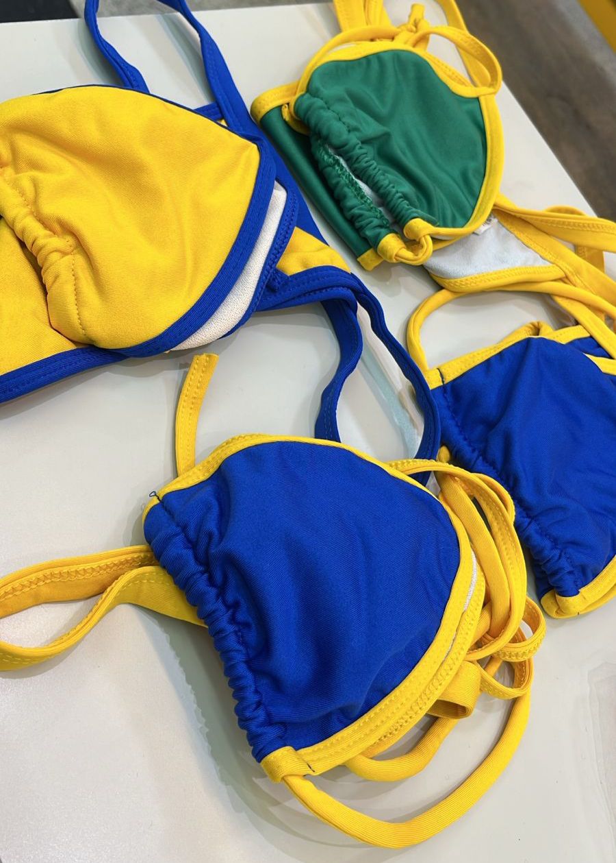 O Biquíni Fita é a escolha perfeita para quem ama um visual ousado, moderno e cheio de personalidade. Com design inspirado nas cores do Brasil, ele traz um contraste vibrante que valoriza ainda mais o bronzeado e destaca a silhueta.