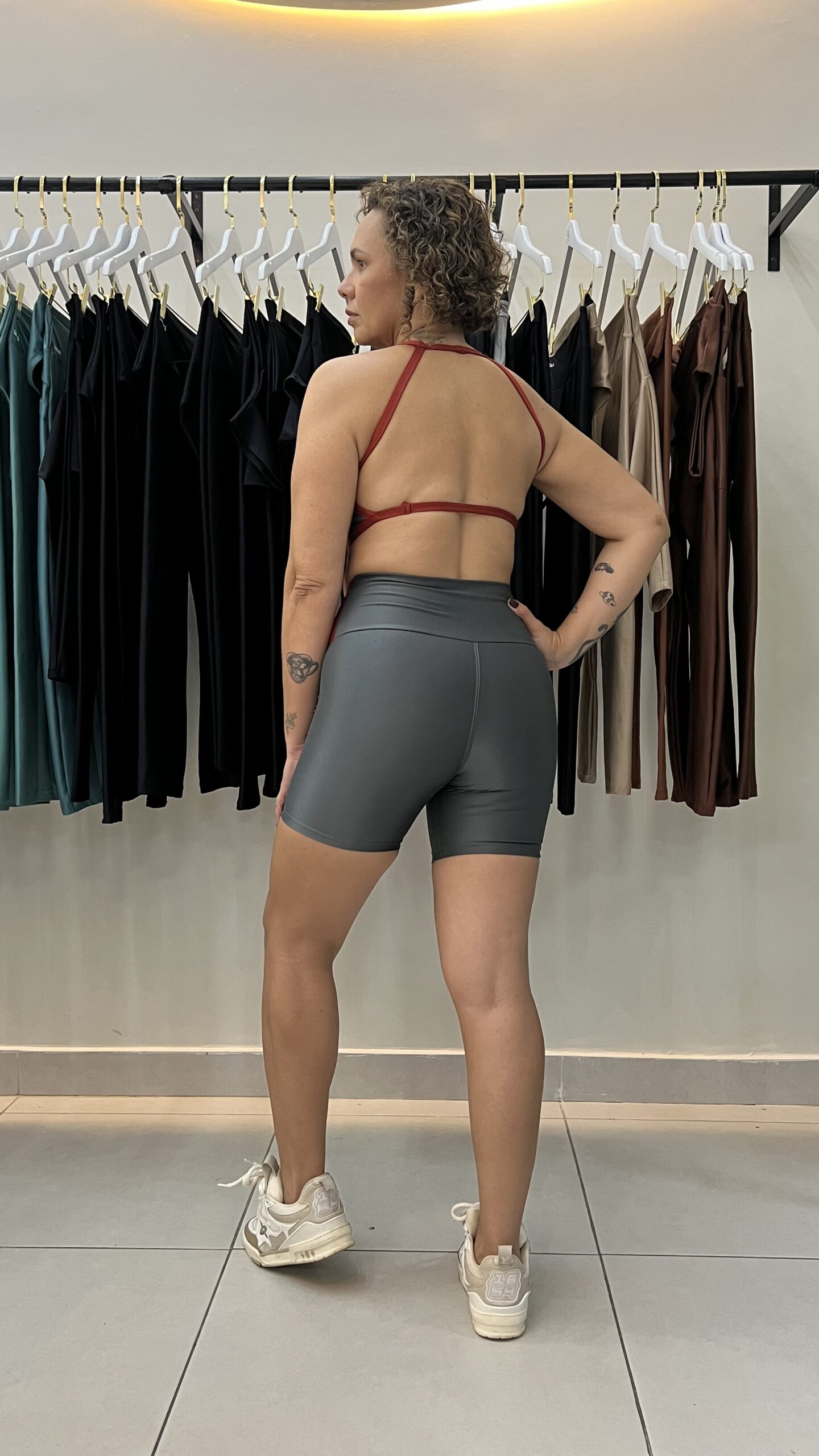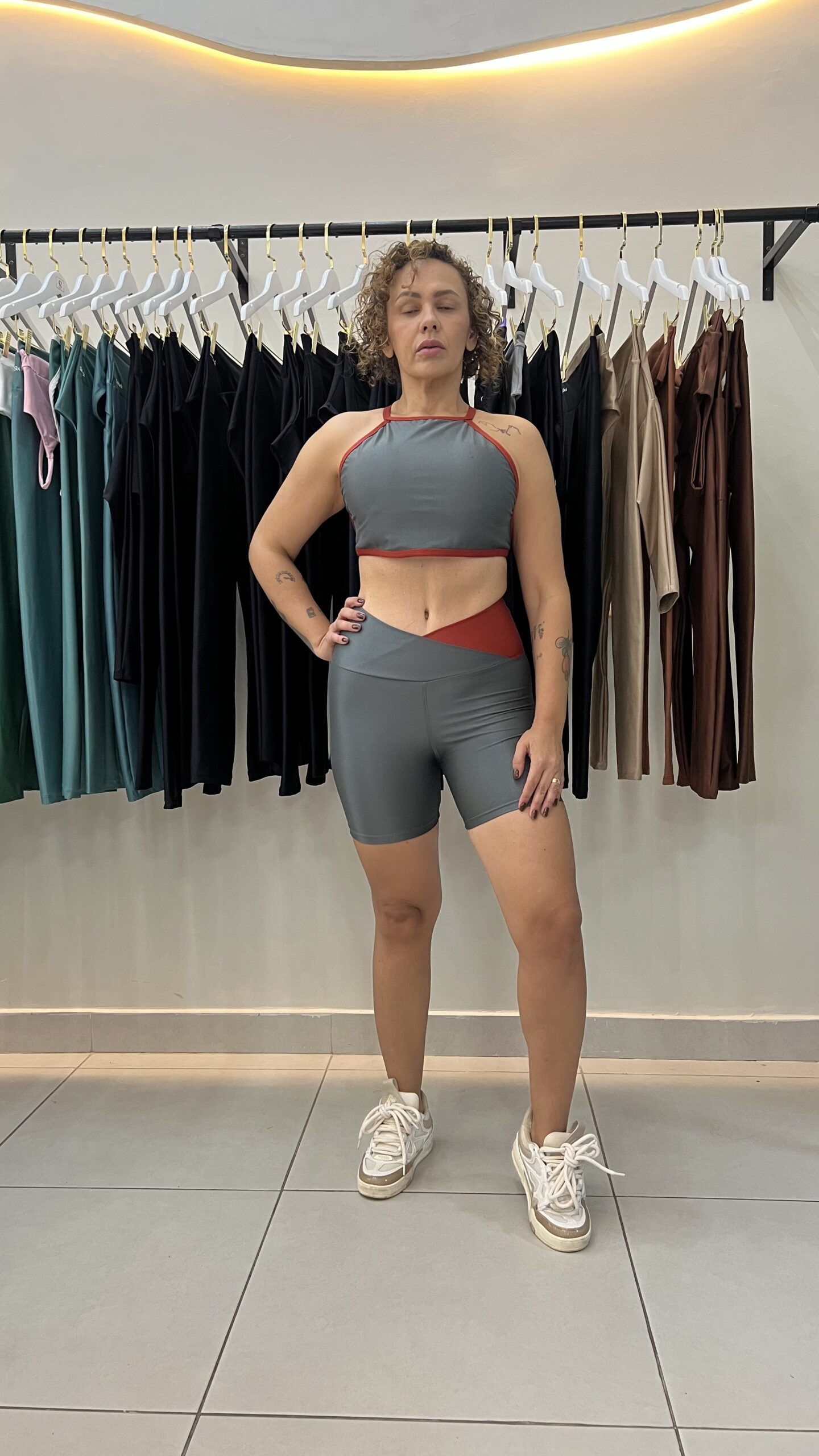O top com alças mais finas foi desenvolvido para oferecer sustentação com leveza. Short com modelagem funcional, cós transpassado e compressão que auxiliam na performance do treino.