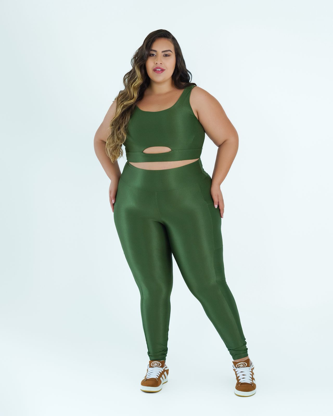 Top com recorte frontal, alças largas, entrada para bojo.Calça com modelagem anatômica que valoriza o corpo e garante conforto em todos os movimentos. Possui cintura alta, que oferece melhor sustentação abdominal, e compressão na medida certa, sem apertar e sem transparência.