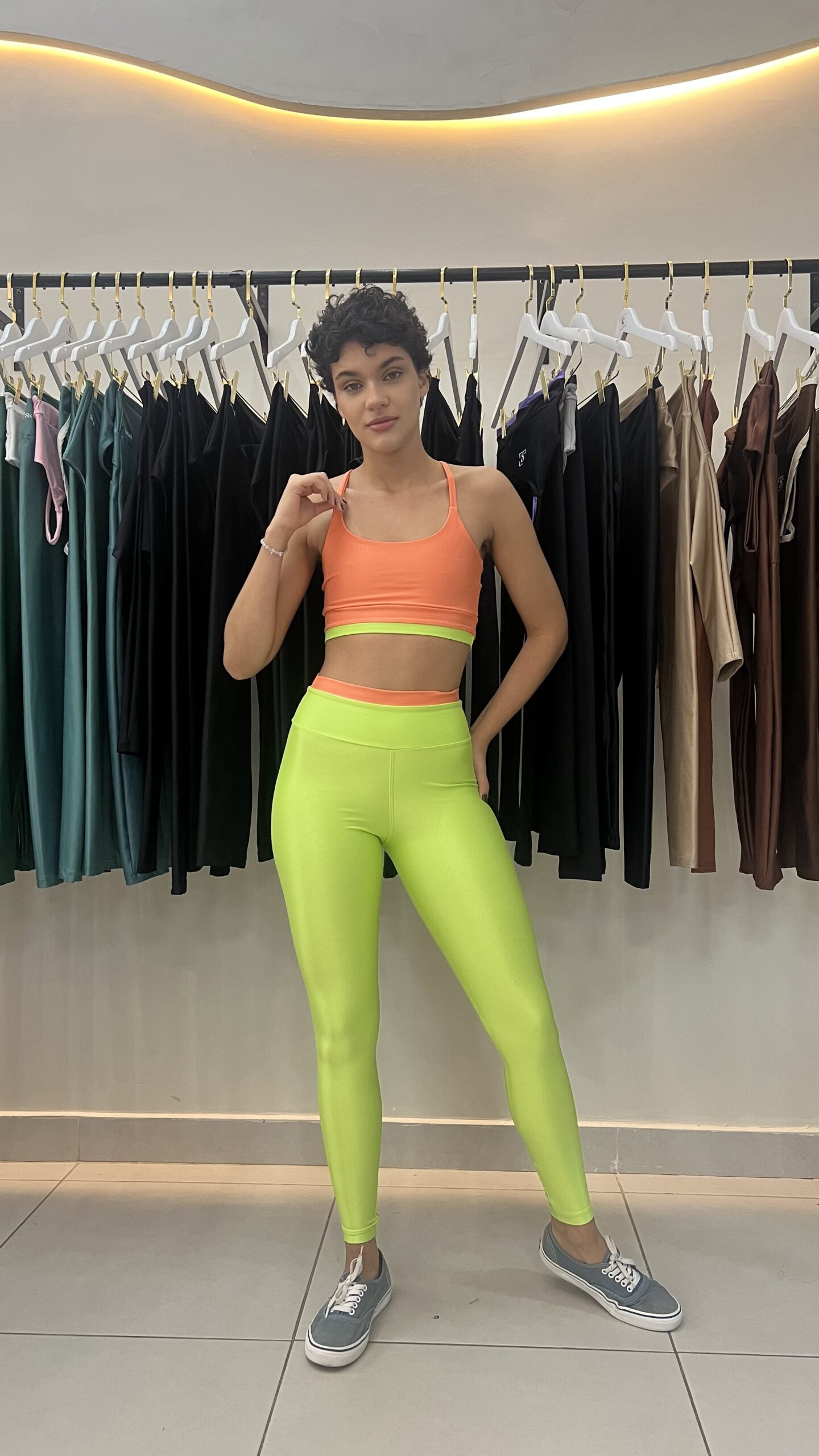 O conjunto foi desenvolvido para oferecer sustentação com leveza, conforto e liberdade de movimento. O top possui modelagem funcional que garante segurança durante os treinos, enquanto a calça conta com compressão ideal para auxiliar na performance e valorizar a silhueta de forma natural.