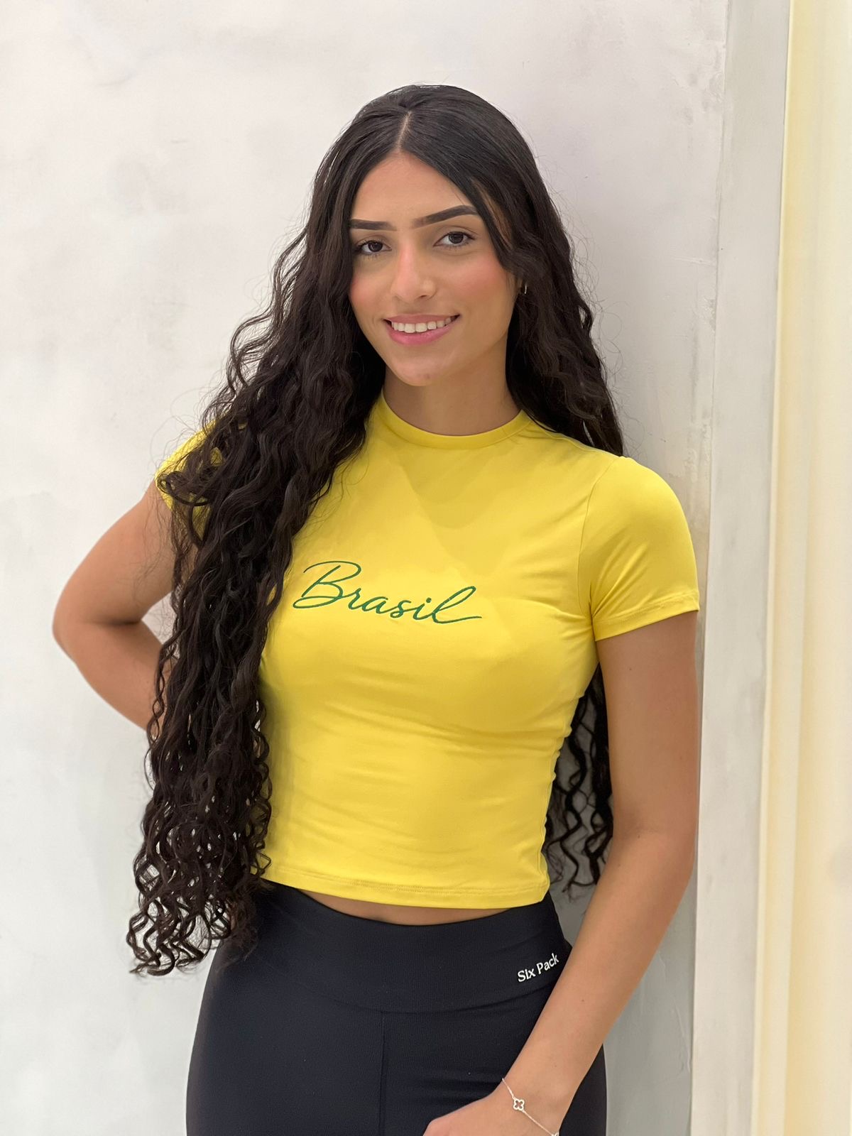 O Cropped em poliamida é a escolha perfeita para quem busca conforto, estilo e versatilidade no dia a dia. Com modelagem ajustada ao corpo e mangas curtas, proporciona um caimento impecável que valoriza a silhueta.
