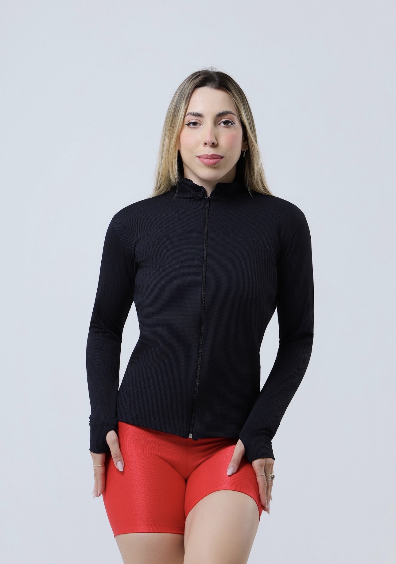 A Jaqueta Sabrina foi desenvolvida para unir estilo, conforto e funcionalidade nos treinos e no dia a dia. Confeccionada em tecido mais encorpado, com textura jacquard, ela oferece um visual moderno e sofisticado, além de maior durabilidade e excelente ajuste ao corpo.